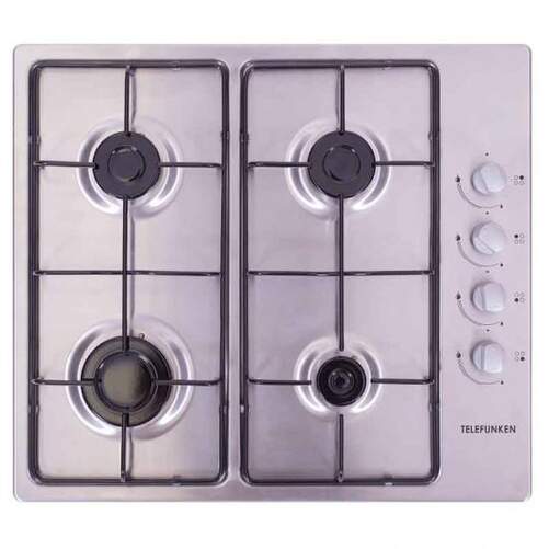 Placa de gas Telefunken TLK4060X - 4 Zonas, Gas But/Nat, Sist. Seguridad FFD, Mandos laterales