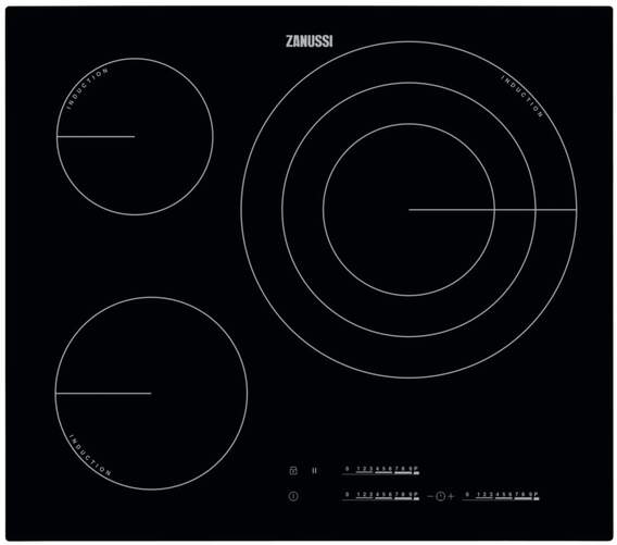 Placa de Inducción Zanussi ZIT6375CB - 3 Zonas (1 Gigante 32cm) Triple, Booster (Sprint), Set & Go