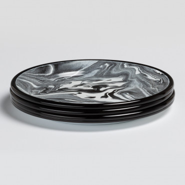 Set de 4 Platos Mahr de diseño.Versátil, funcional y muy sofisticado.Fabricado en acero de alta calidad.No es apto para microondas.Compuesto por 4 platos llanos.Destaca su esmaltado que rememora el mármol.Ideal para cocinas, comedores, bares y restaurantes.Combínala con el resto de la vajilla Mahr.A pesar de ser apto para lavavajillas, recomendamos lavar a mano con un cepillo o esponja suaves para disfrutar durante mucho más tiempo del brillo radiante del esmalte.*Para más información, consulte el producto unitario.