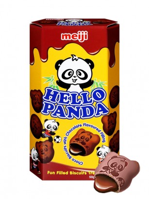 Deliciosas Galletas Meiji Hello Panda Doble Chocolate Divertidas galletas horneadas con chocolate y rellenas de la deliciosa crema Meiji de chocolate con leche. Cada galletita tiene un diseño diferente del divertido Panda.