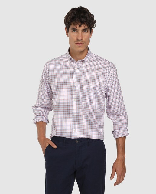 Emidio Tucci - Camisa Eco Friendly De Hombre Classic De Cuadros Granate