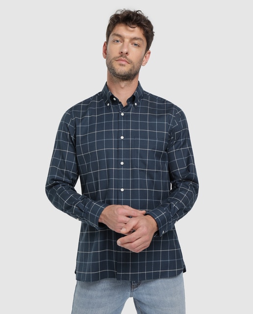 Emidio Tucci - Camisa De Hombre Classic De Cuadros Azul