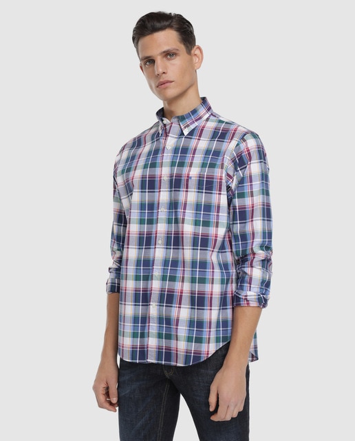 Olimpo - Camisa De Hombre Classic De Cuadros Multicolor