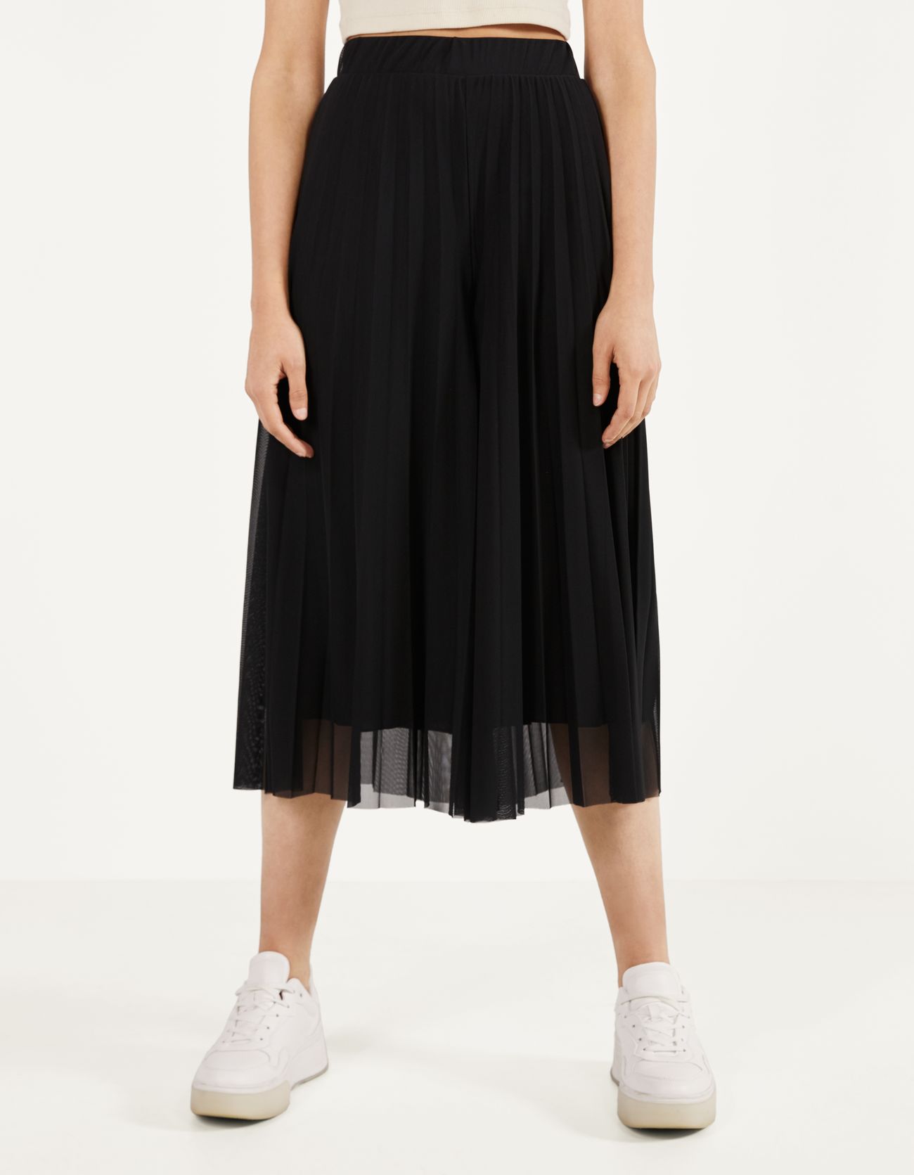 Bershka Pantalón Wide Leg de tul Mujer L Negro