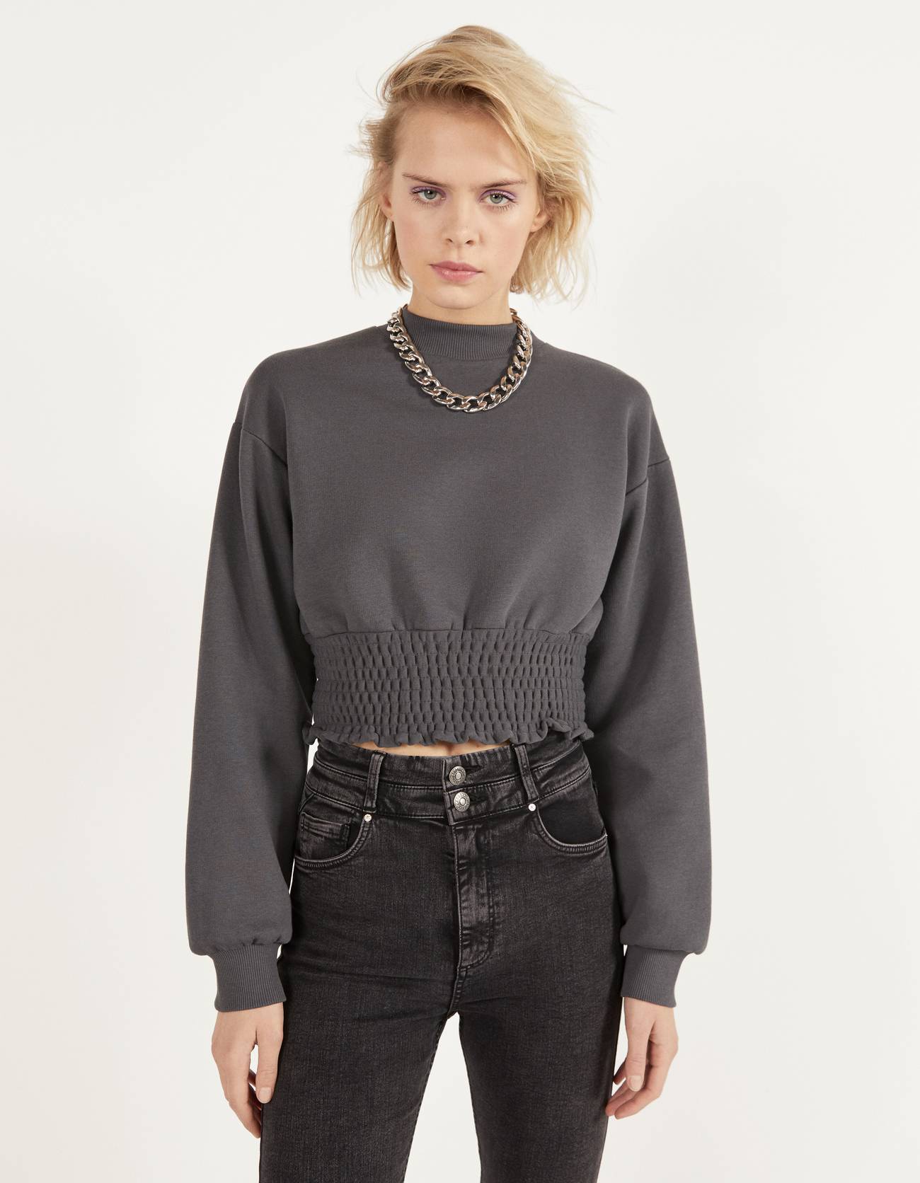 Bershka Camiseta con volantes y goma canilla Mujer L Negro