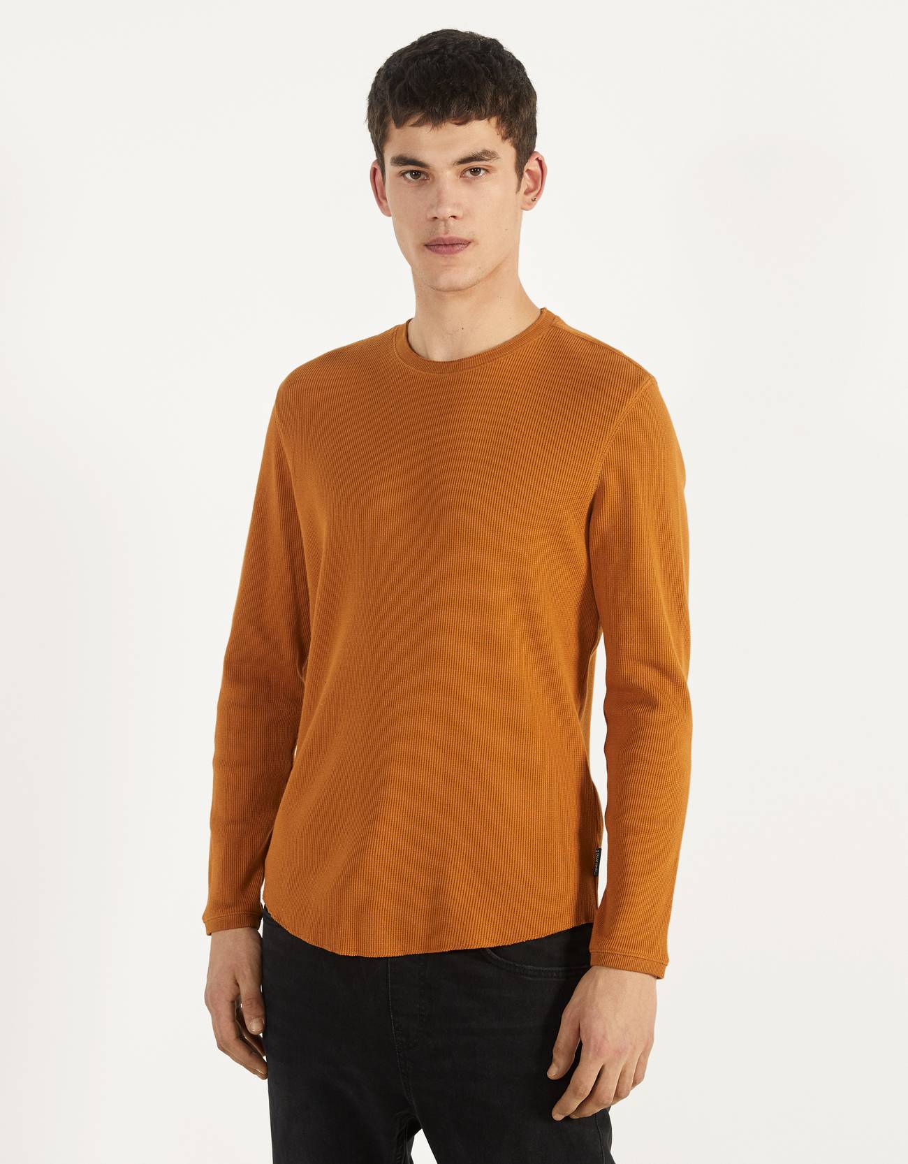 Bershka Jersey con cuello redondo Hombre XL Mostaza