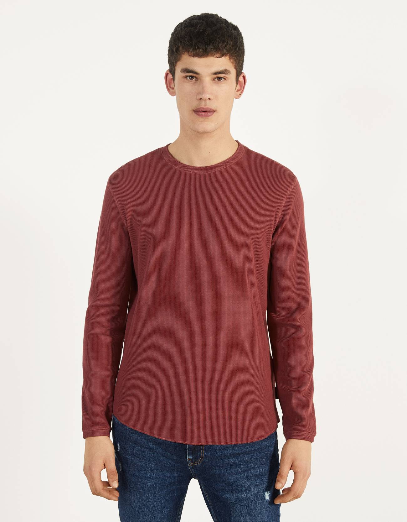 Bershka Jersey con cuello redondo Hombre XL Granate