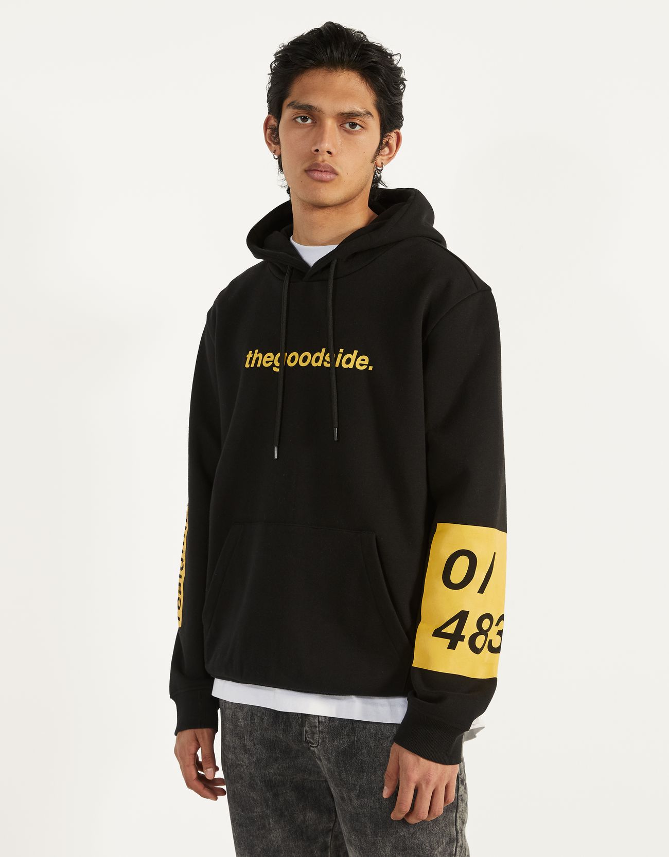 Bershka Sudadera con estampado y capucha Hombre XL Negro