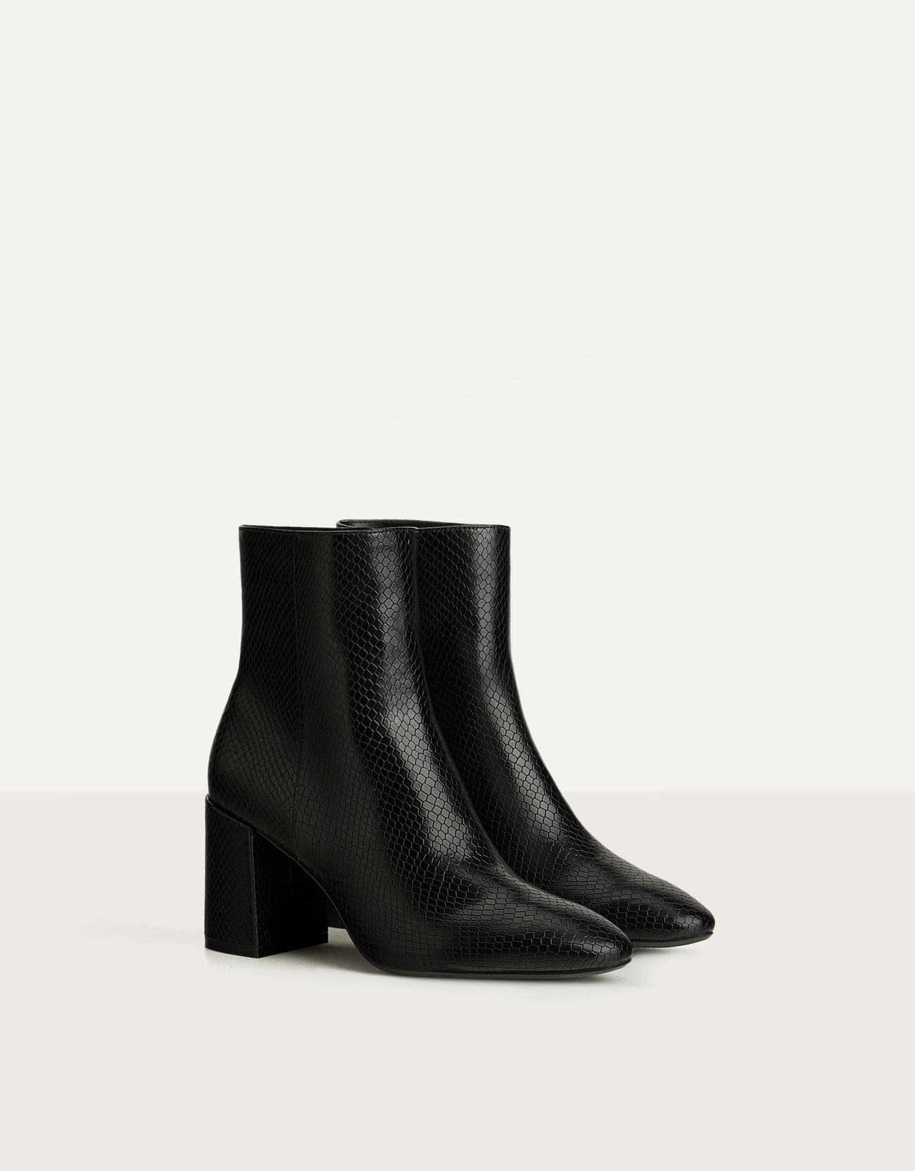 Bershka Botines tacón grabado animal Mujer 41 Negro
