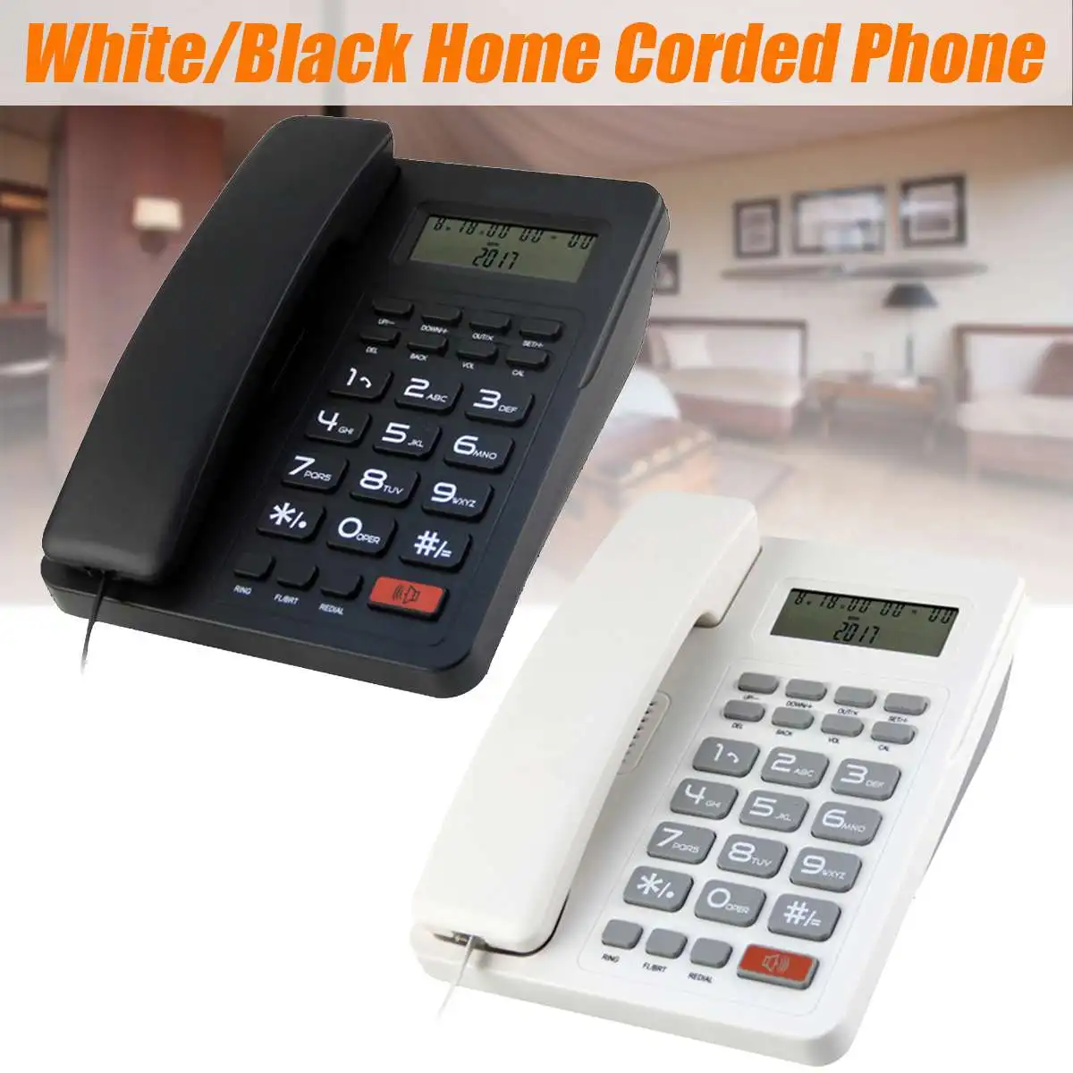 Plastic Desktop Corded Telephone Phone LCD Display Caller ID Volume Clock for House Home Call Office Company Hotel Random Color