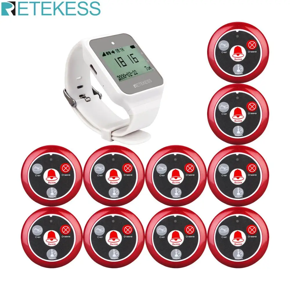 Retekess Hookah Watch Receiver+10pcs Call Button Transmitters For Russian Wireless Pager Restaurant Waiter Calling System cafe
