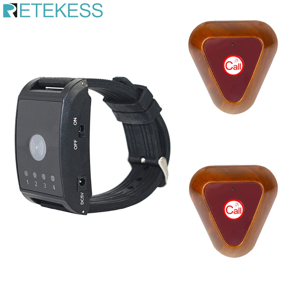 Retekess 433MHz Wireless Calling System Waiter Call Pager 2pcs Watch Receiver T128 + 15pcs Call Button T117 Restaurant Equipment
