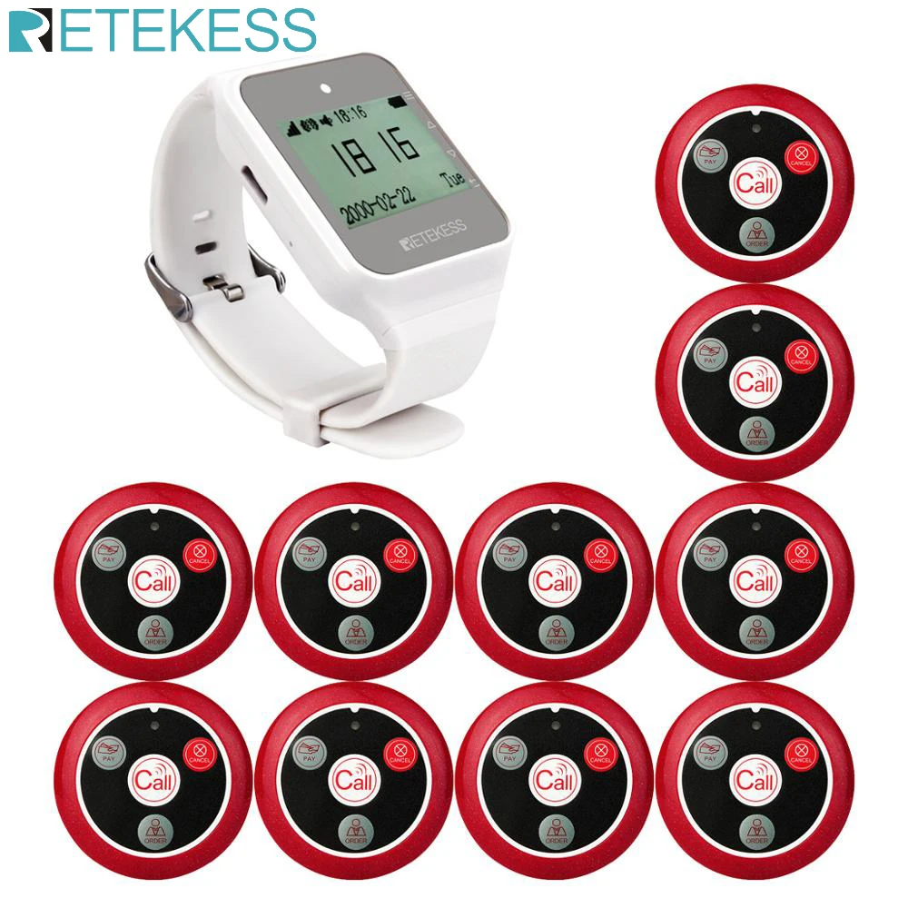 Retekess TD108 Watch Receiver+10pcs Call Button Transmitters Wireless Pager Restaurant Waiter Calling System cafe church office