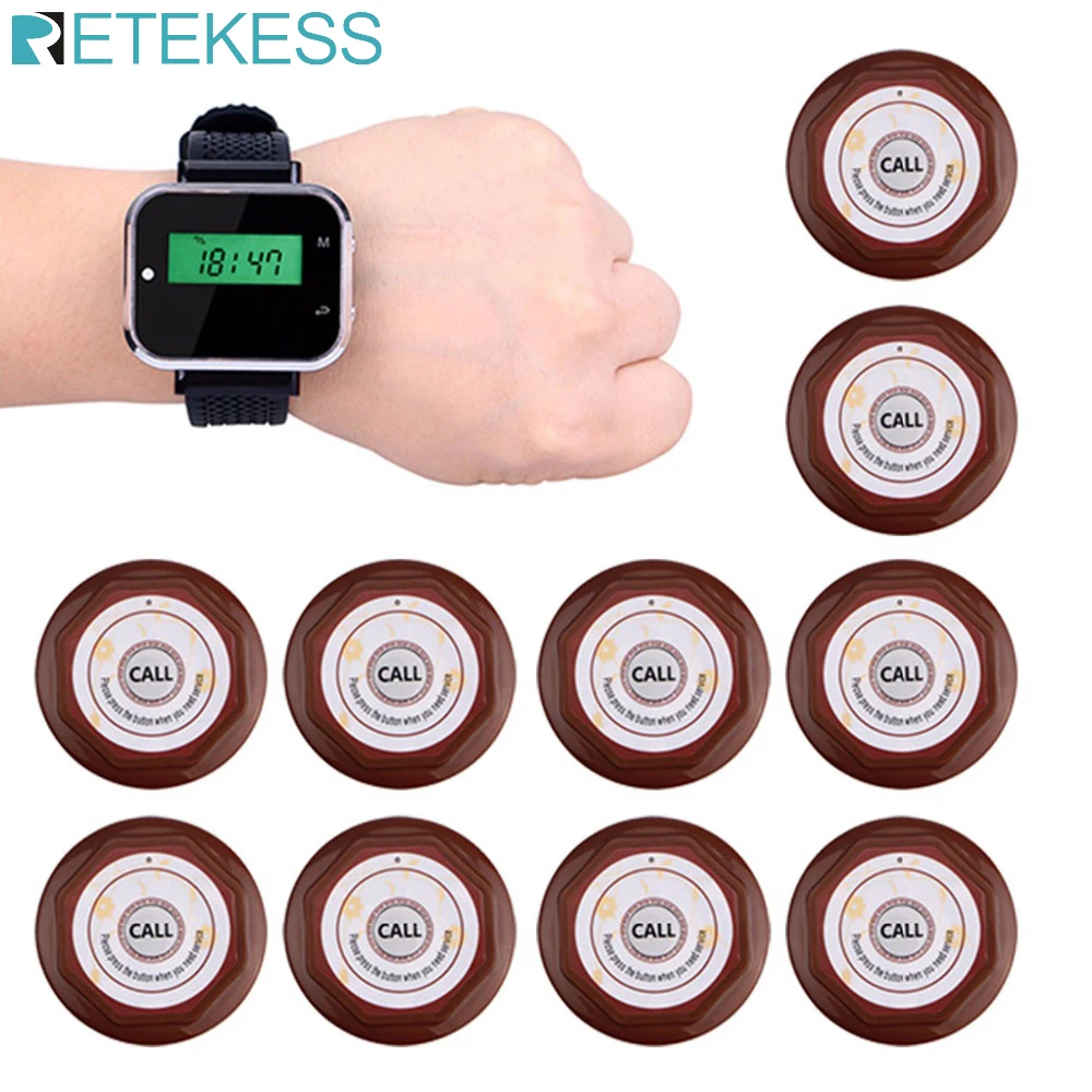 Retekess Wireless Calling System 1 Watch Receiver+10 Call Button Pager Restaurant Equipment For Fast Food Cafe Hospital F3288B