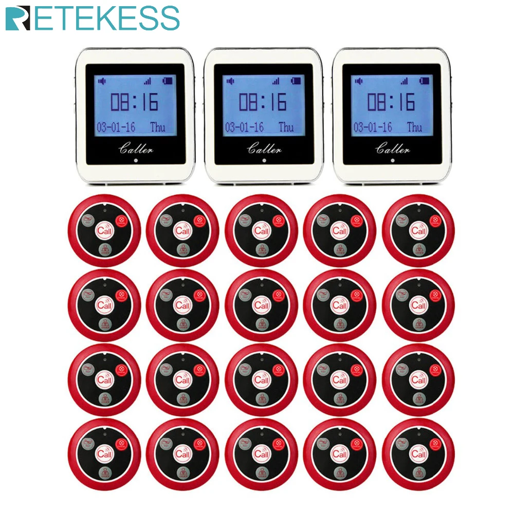 RETEKESS Wireless Waiter Calling System For Restaurant Service Pager System Guest Pager 3 Watch Receiver + 20 Call Button F3288B