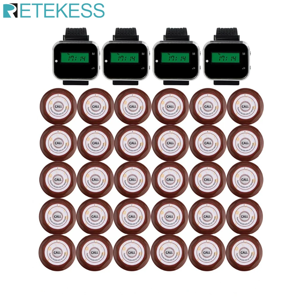 Restaurant Pager Wireless Calling System For Cafe Bar 4 Watch Receiver + 30 Call Button Transmitter Beeper Restaurant Equipment