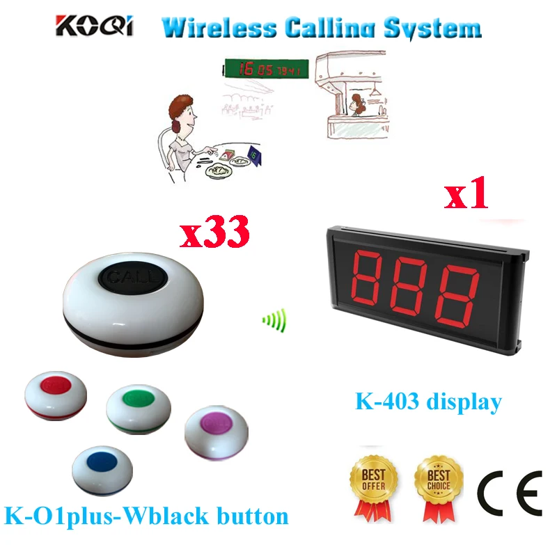 Waiter Bell Buzzer System Remote Control Best Discount Good Price Of Restaurant Pager Ycall Brand(1 Display+33 Call Button)