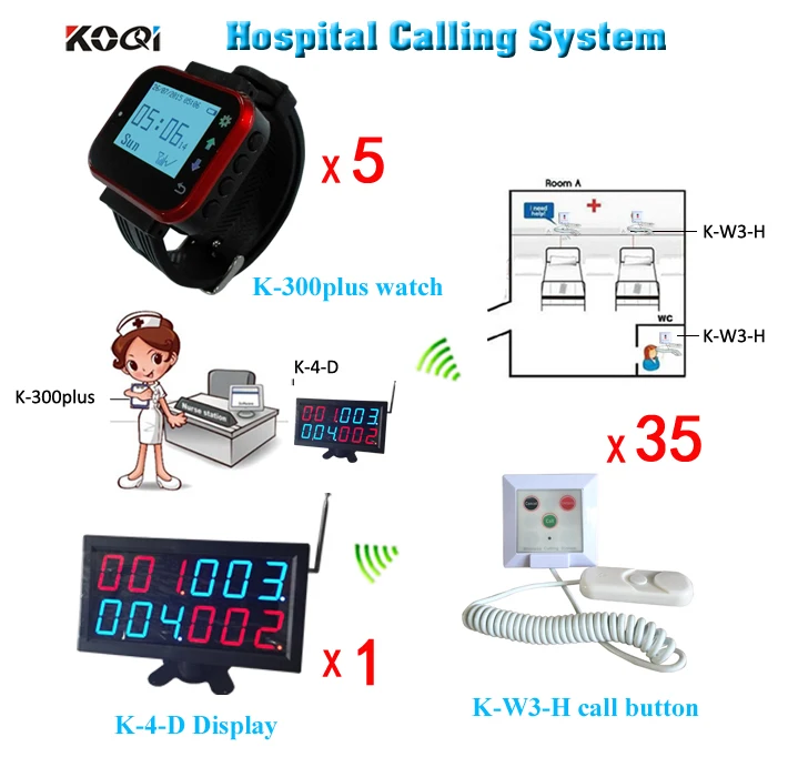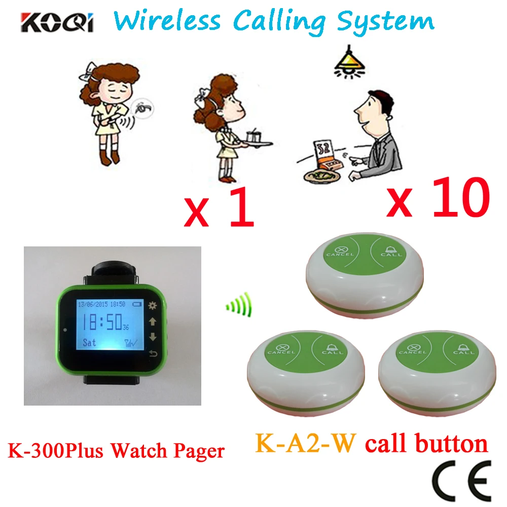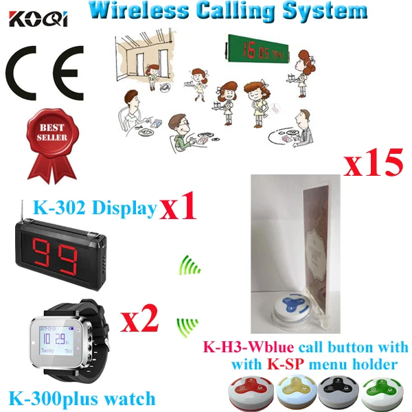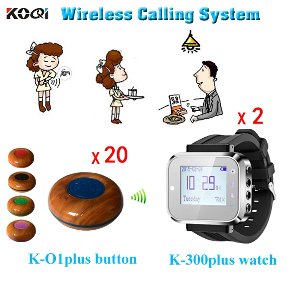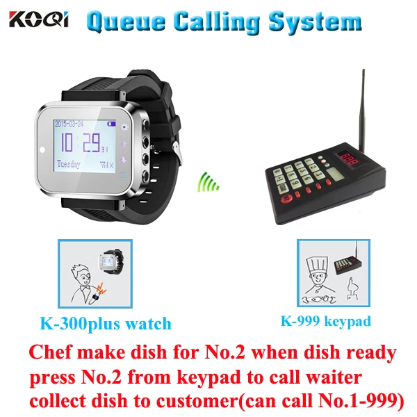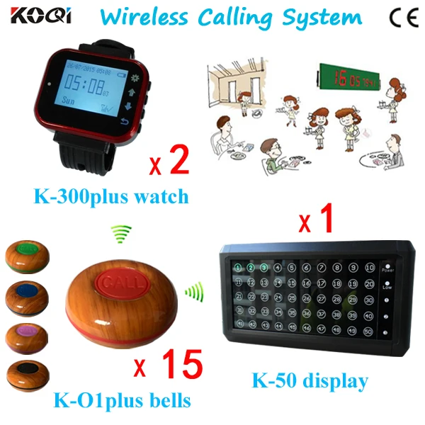 Restaurant Wireless Ordering System with LED Display Receiver K-50 Transmitter Bell Button K-O1plus Pager Watch K-300plus