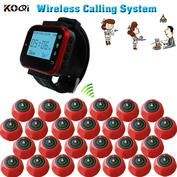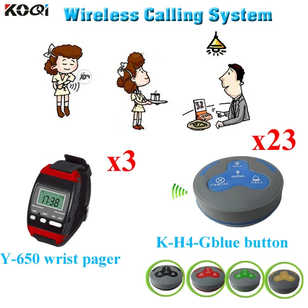 Wireless Calling System Restaurant Call Button Transmitter Waiter Call Bell Equipment 3pcs Watch Pager Y-650 With 23pcs K-H4