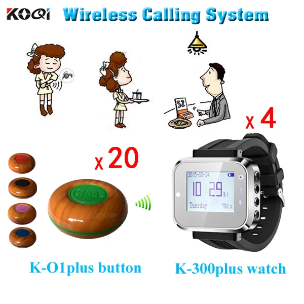 Cheapest Calll System Wireless Waiter Calling System 20 Pagers Bells and 4 Smart Watch Wrist Free Shipping