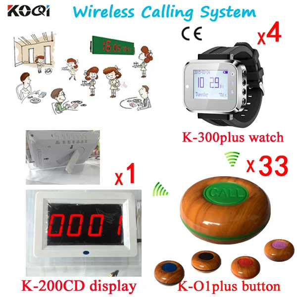 Watch Service ,Restaurant Cafe Service System,Kitchen Waiter Call 1pc Receiver+4pcs Watch+33pcs Call Buttons