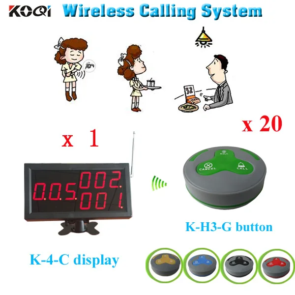 queue pager 1 K-4-C display + 20pcs K-H3 call button restaurant queue management system queue buzzer systems