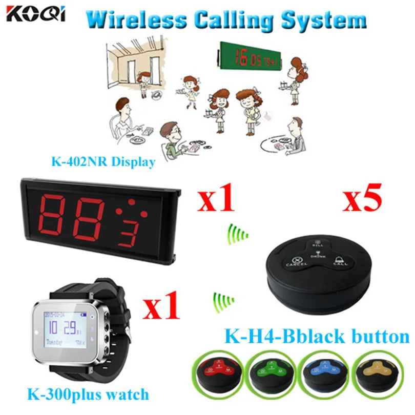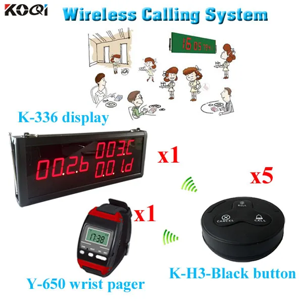 Wireless Waiter Watch Calling System For Restaurant With Factory Price 1 led display + 1 wrist watch + 5 call button