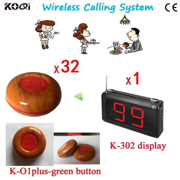 Restaurant Customer Call System with monitor bell button watch pager (1 display receiver+ 2 watch +30 table bell button)
