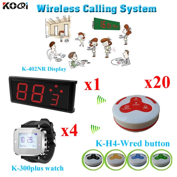 Waiter Service Call Button Pager Call Bell System Restaurant Equipment( 1 display + 4 watch + 20 call button)