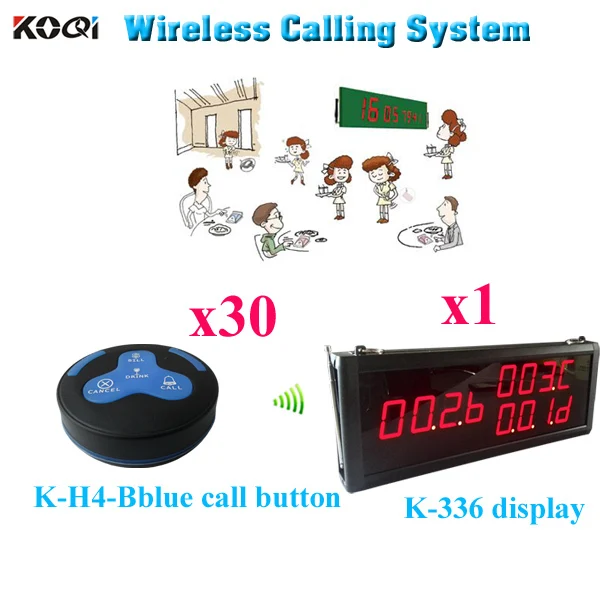Order System For Restaurant 433 Pager Wireless Transmitter Receiver( 1pcs display+ 30pcs call button)