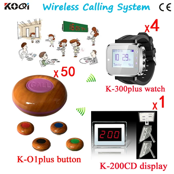 Table Buzzer Call System Customized Hot Sell Wireless Restaurant Equipment (4pcs watch+40pcs caller)