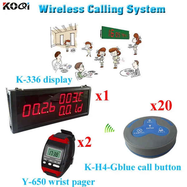 Wireless Calling System 433.92mhz Wireless Beeper Restaurant Calling Service Equipment (1 display 2 wrist watch 20 call button)