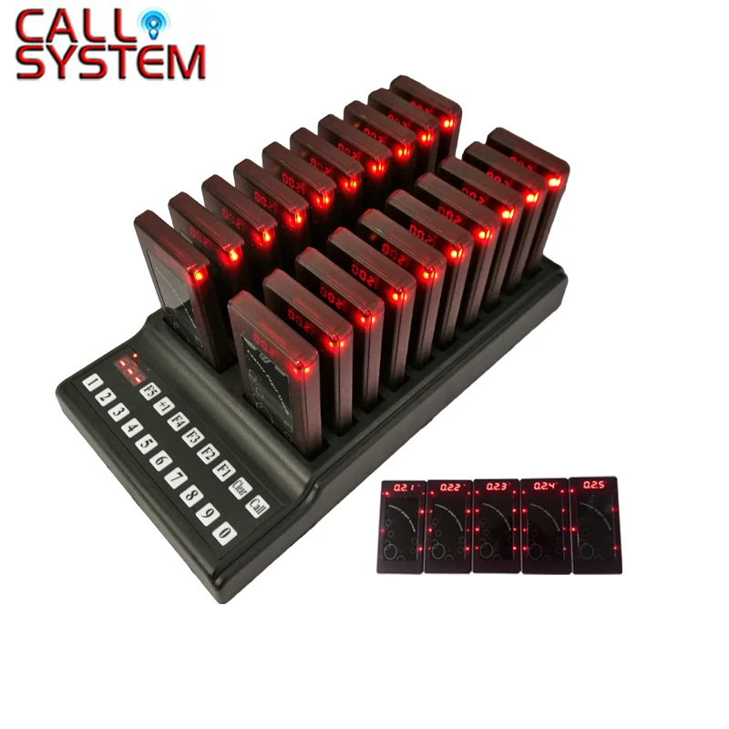 433.92mhz One transmitter with charger base and 25 pagers fast food restaurant guest queue buzzer system