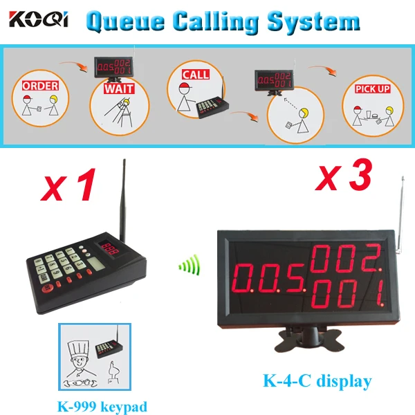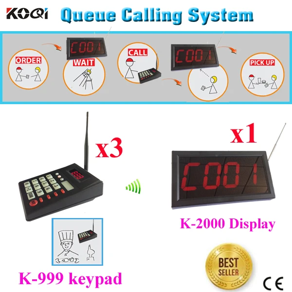 Wireless Queue Management System For Kitchens Restaurants With 3 Wireless Numeric Keyboard And 1 LED Display Receiver With CE