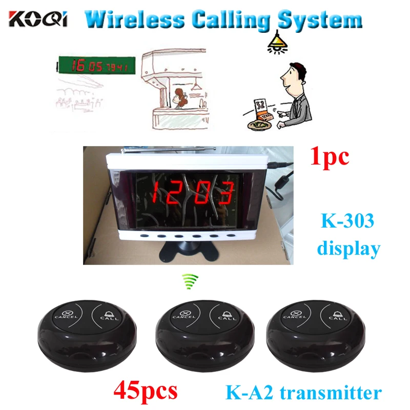 Restaurant equipment Waiter button calling system 1 monitor with 45pcs table bell for service
