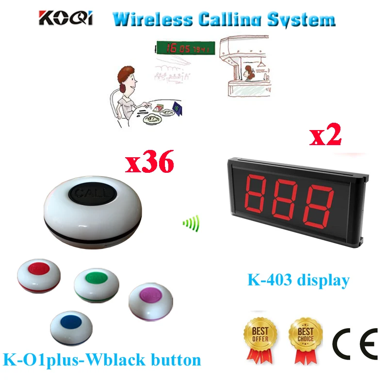 Waiter Calling Bell System Modern Display With Call Button Customer Buzzer For Service 433.92mh(2 Display+36 Call Button)