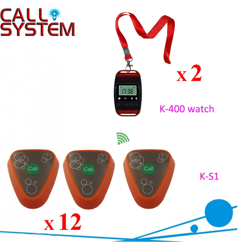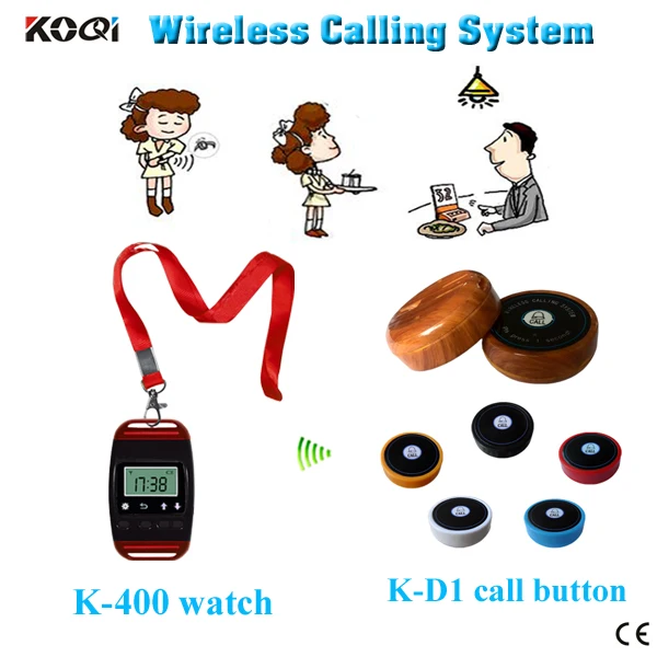 Wireless Waiter Pager System Long Range Distance 100-200M In The Open Air Area For Restaurant(1 watch+2 call button)