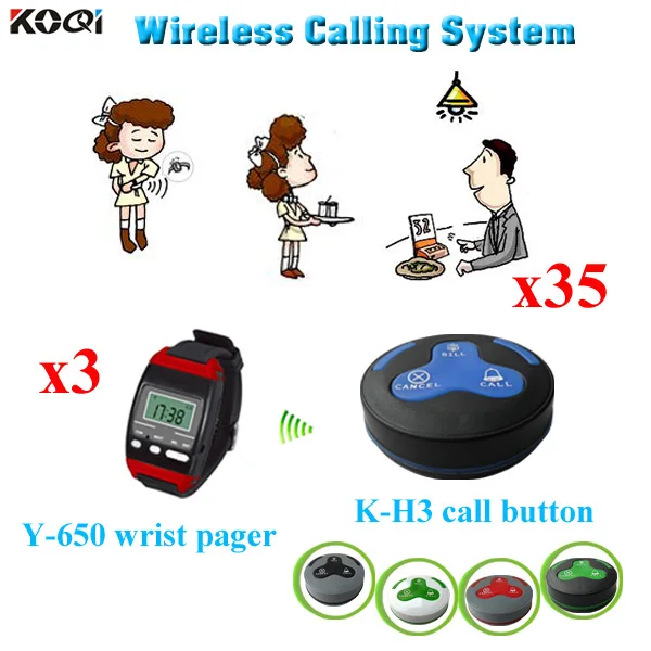 wireless waiter watch pager system for restaurant with 433.92Mhz factory price 3 wrist watch + 35 call button