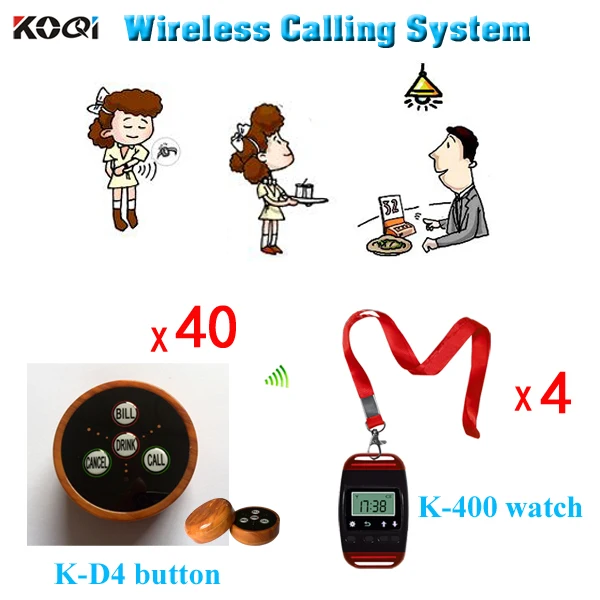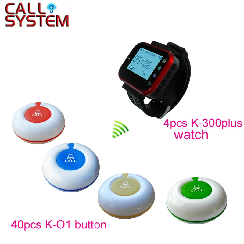 4 watches with 40 bell button Wireless Cafe Restaurant Pager Buzzer Service System