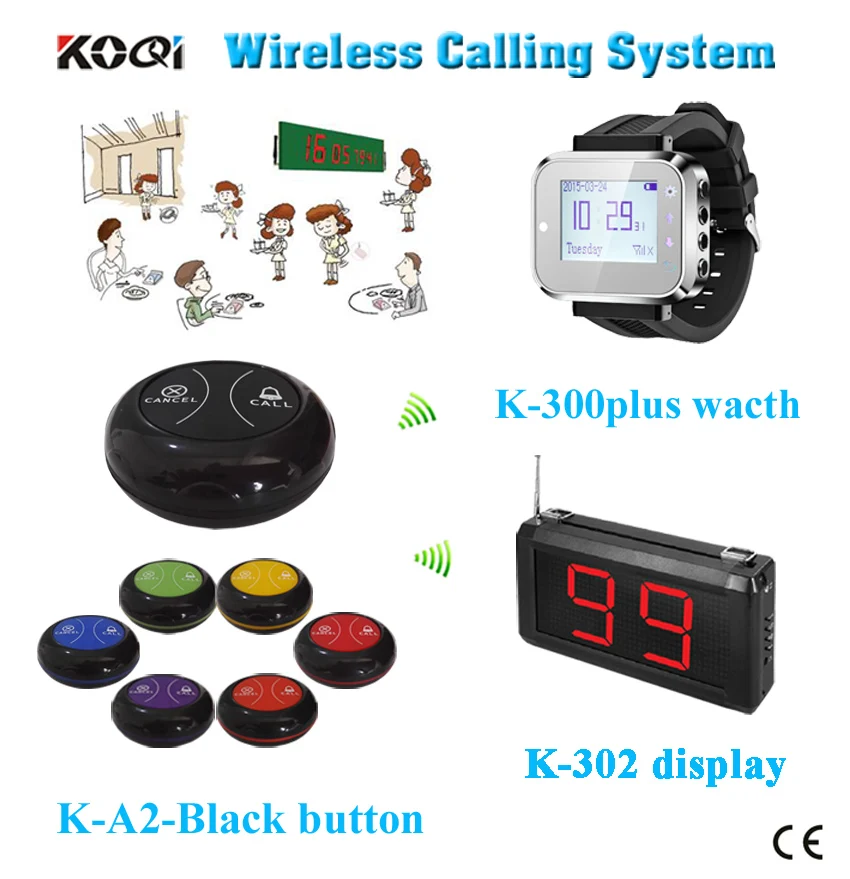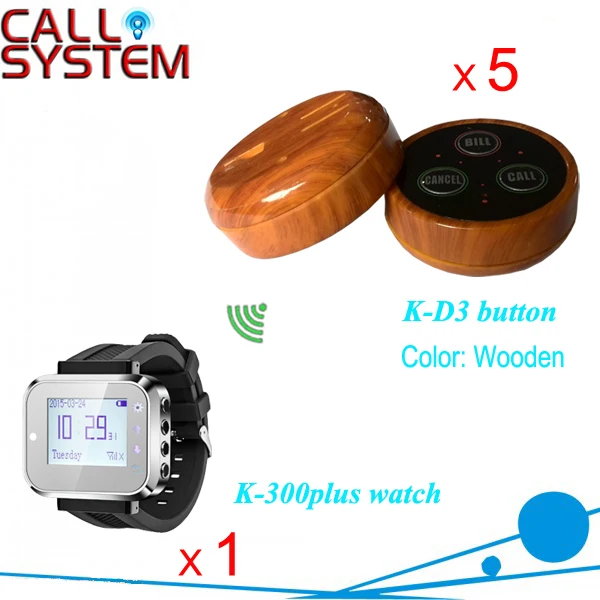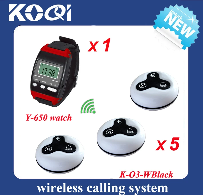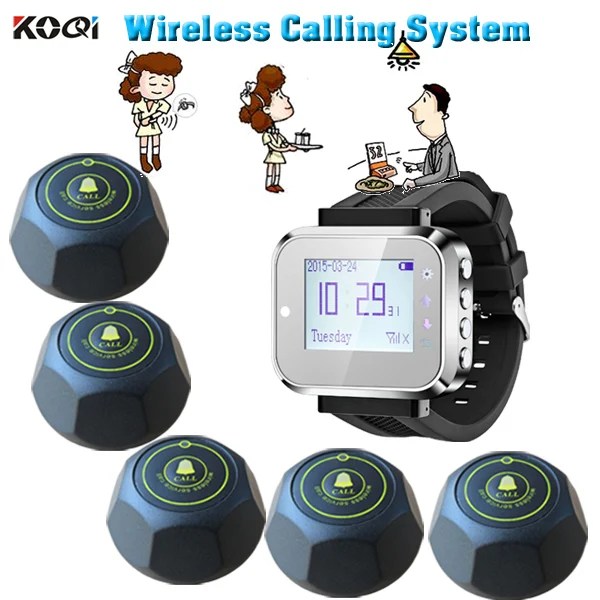 Wireless Alphanumeric Watch Calling System For Beach Restaurant Table Button Caller(1pcs watch+5pcs caller)