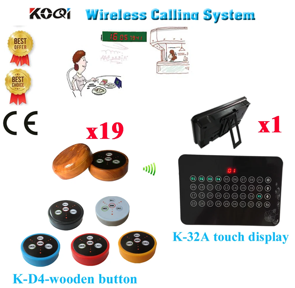 Pager Calling System Restaurant Wireless Service Pager Table Bell Waiter With Ycall Brand(1 display+19 call button)