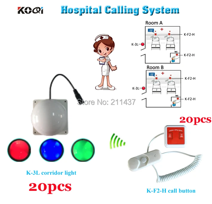 Nurse call device for nuring home K-F2-H button be installed on each room and K-3L corridor light for nurse from outside