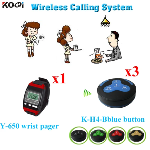 Restaurant Pager System-New Design 1pcs Wrist Watch Pager And 3pcs Waterproof Call Button