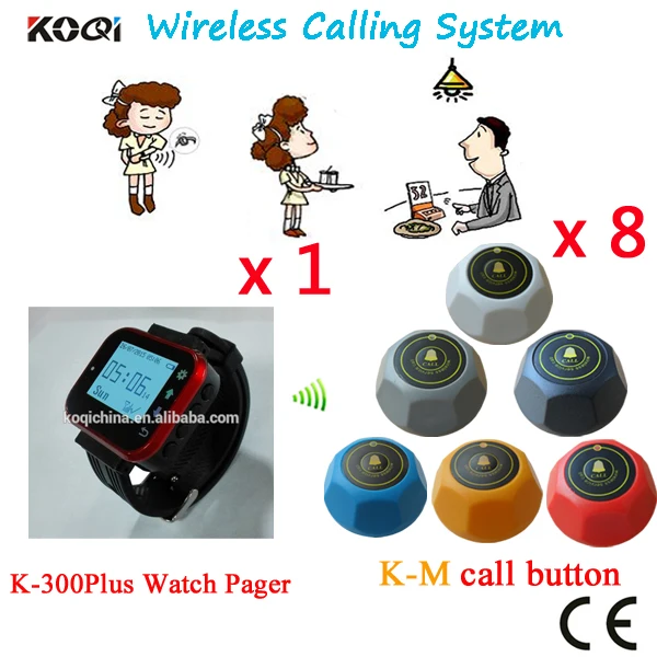 Wireless Watch Pager System Super Quality Chinese Electric Restaurant Service Equipment(1 watch+8 table call button)