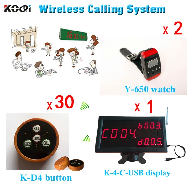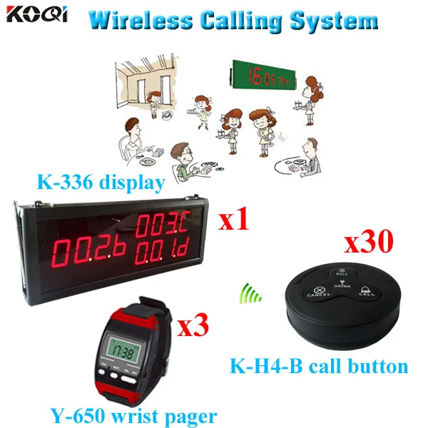 Hotel Equipment Service Bell System Suit For Restaurant Customer Calling Service Set(1 display 3 wrist watch 30 call button)