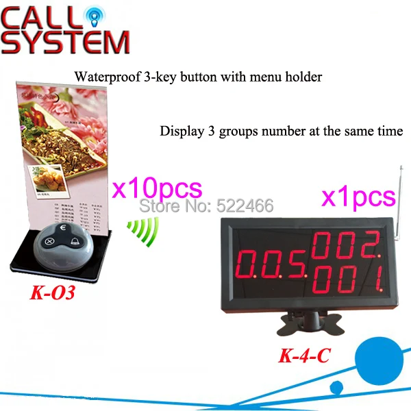 Wireless Restaurant Call System in 433MHz with 10 table calling button and 1 number display DHL shipping free