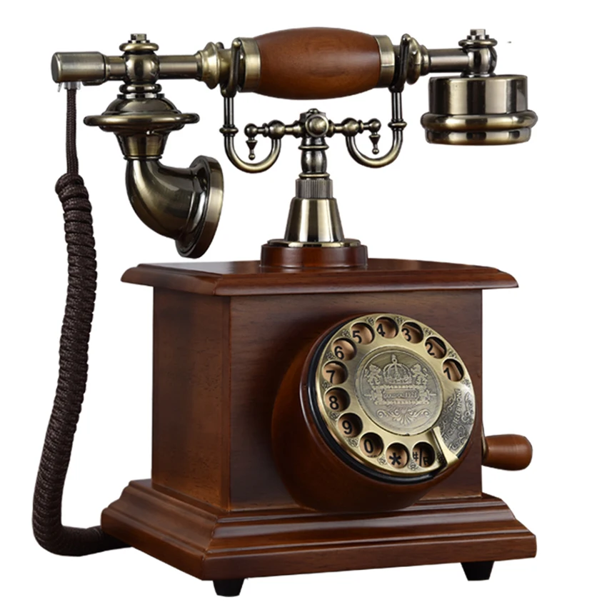 Antique Telephone, Wooden Corded Vintage Telephone Decorative Landline Classic Rotary Dial with Hanging Headset for Home Hotel