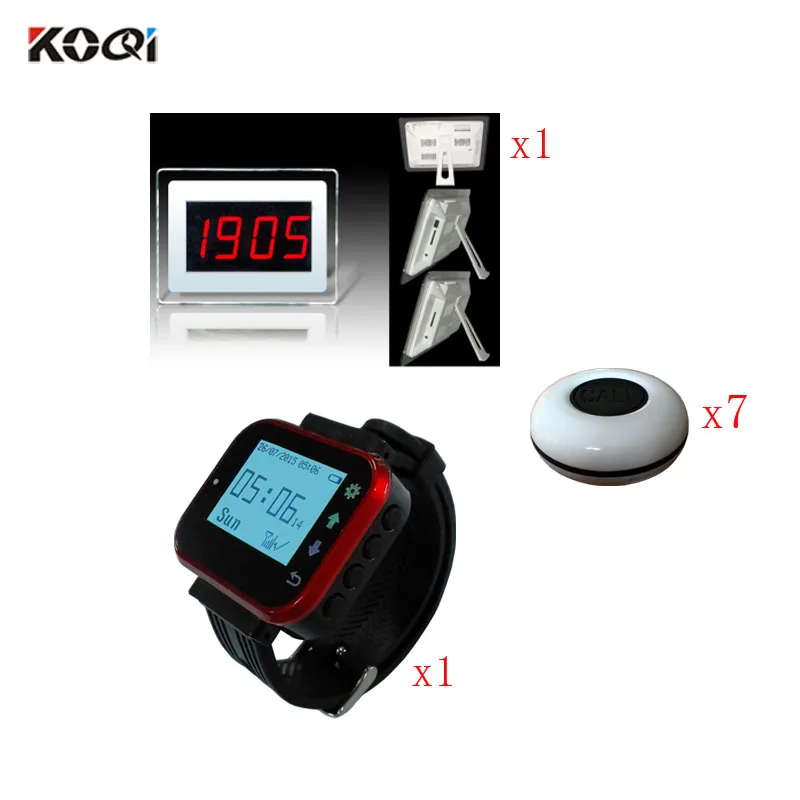 Wireless Table Paging System 433.92mhz Restaurant Call Number Display Watch Waterproof Caller(1 display+1 watch+6 call button)