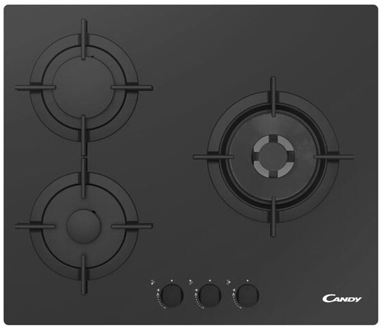 Placa de gas Candy CVG 63 SWPN - 3 Fuegos (1 Doble anillo), CristalGas Templado, Negra
